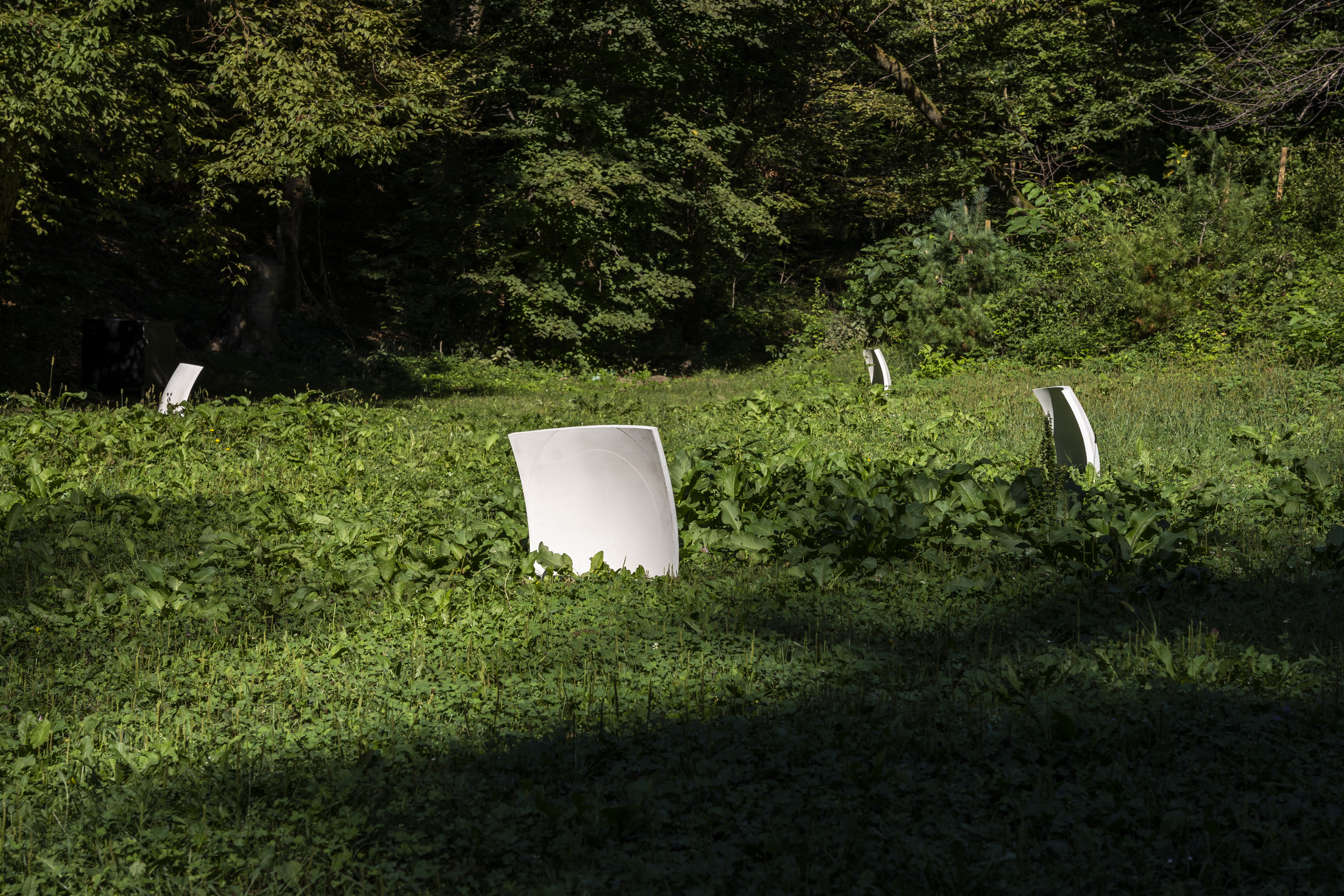 The work Field of Action: Burning Pleasure by Sara Salamon expands the perception of Dubravkin put park-forest’s soundscape, inviting the passers-by to explore the acoustic mirror installation. The elliptical acoustic mirrors use their concave surface to gather and focus sound waves (like, for example, with microphones for bird listening or TV antennas). The sound is sent directly to the ear of the visitors who need to find their point of hearing in space.
